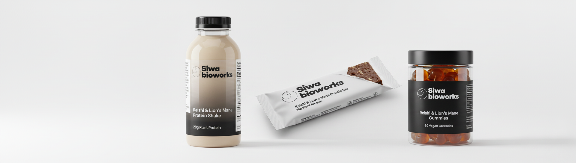 Clean, consistent bioactives from Reishi and Lion's Mane engineered in controlled bioreactors for reliability and potency.